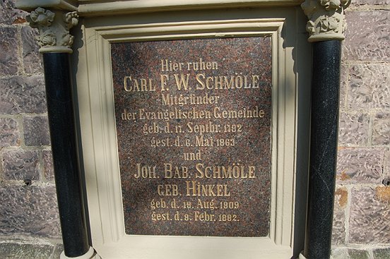 1878 schenkte Rudolf Schmöle der Gemeinde die erste Turmuhr, sie wurde 1958 ausgetauscht – ebenfalls ein Geschenk. 1929 finanzierte Richard Rinker den Bau einer Empore, Dank der Schmöle-Familie erhellte ein großer Kronleuchter das Kirchenschiff, und auch das frühere Altarbild, das heute an der Seitenwand der Orgelempore hängt, stiftete Gustav Schmöle. Die früheren bunten Chorfenster der Kirche verdankte die Gemeinde Karl Becker vom Eisenwerk Rödinghausen.