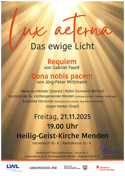 In dieser Rubrik schreiben wir sehr subjektiv: Was uns bzw. mir gefallen hat. Als Mitwirkende in der Evangelischen Kantorei kann ich somit nur meine eigenen Eindrücke aus dem Chor heraus beschreiben. Deshalb beschränke ich mich auch nur auf den Teil, an dem ich beteiligt war: auf das Requiem von Fauré, das am 21. November in der Heilig-Geist-Kirche aufgeführt wurde.